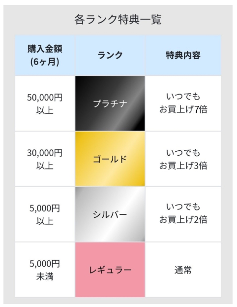 ※ランクアップに関する購入金額累計は半年ごとに更新されます。