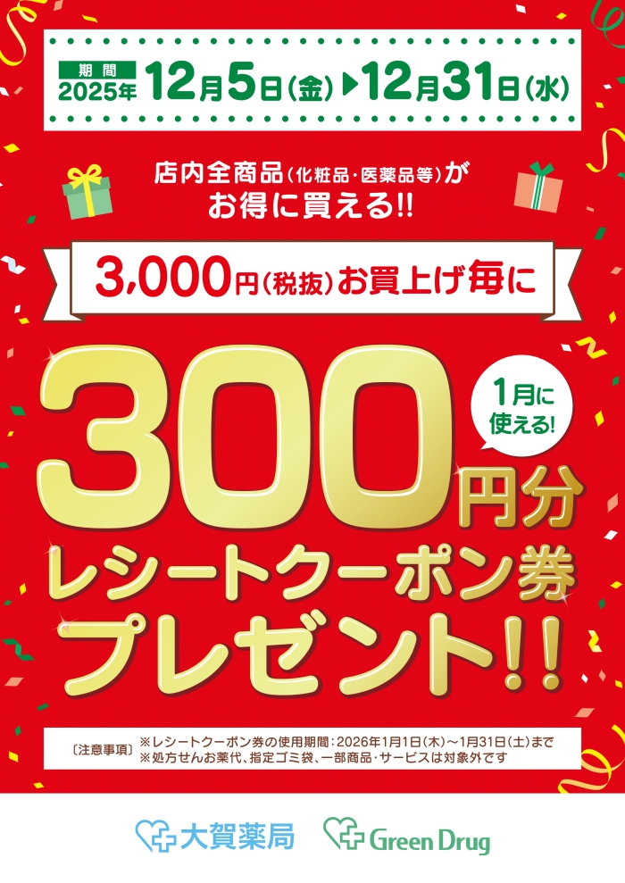 ※レシートクーポン券はレシート記載の『ポイント対象額』に応じて発券されます。