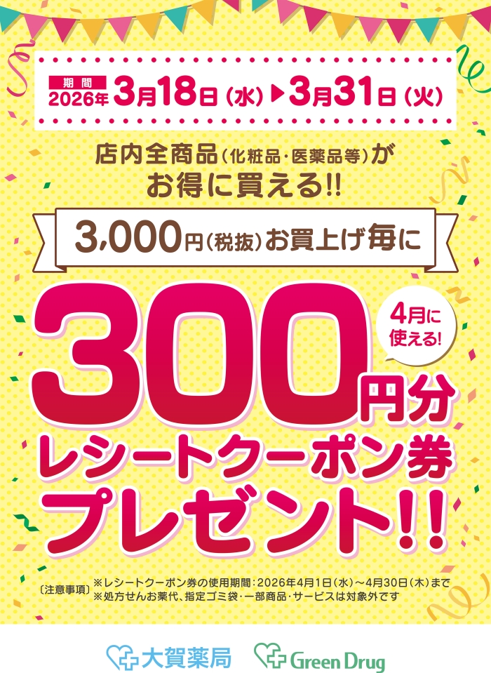 ※レシートクーポン券はレシート記載の『ポイント対象額』に応じて発券されます。