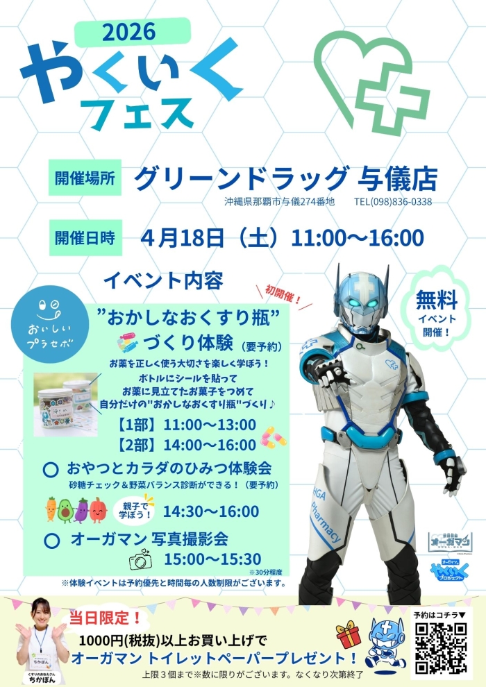 4月18日(土)グリーンドラッグ与儀店にてやくいくフェス開催のお知らせです。